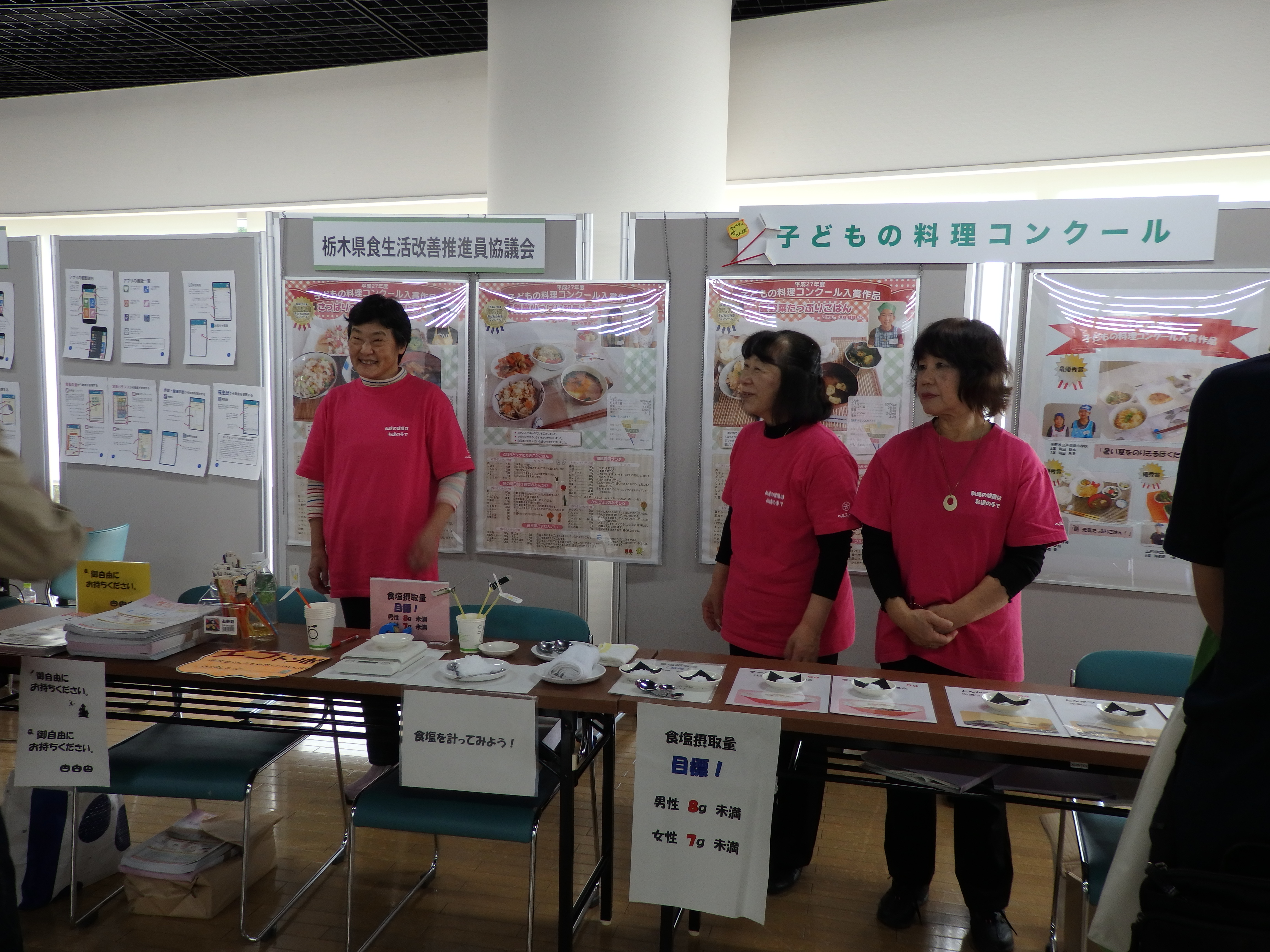 栃木県食生活改善推進員協議会では、平成28年10月29日(土)にとちぎ健康の森で開催した「とちぎ健康フェスタ2016」において、毎年実施している“子どもの料理コンクールの紹介”や“減塩について”ブース出展をしました。