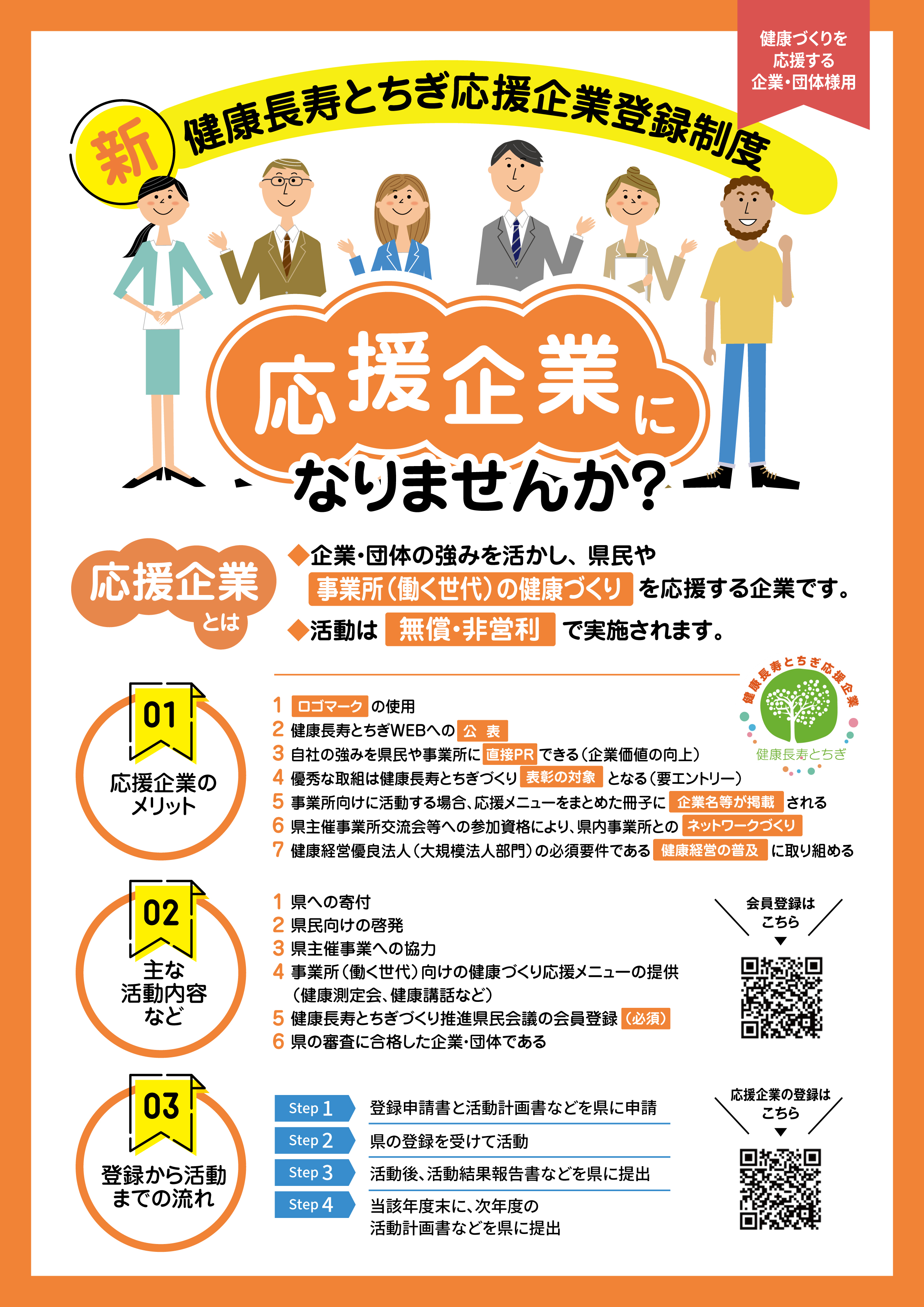 「健康長寿とちぎ応援企業」については次のとおりです。